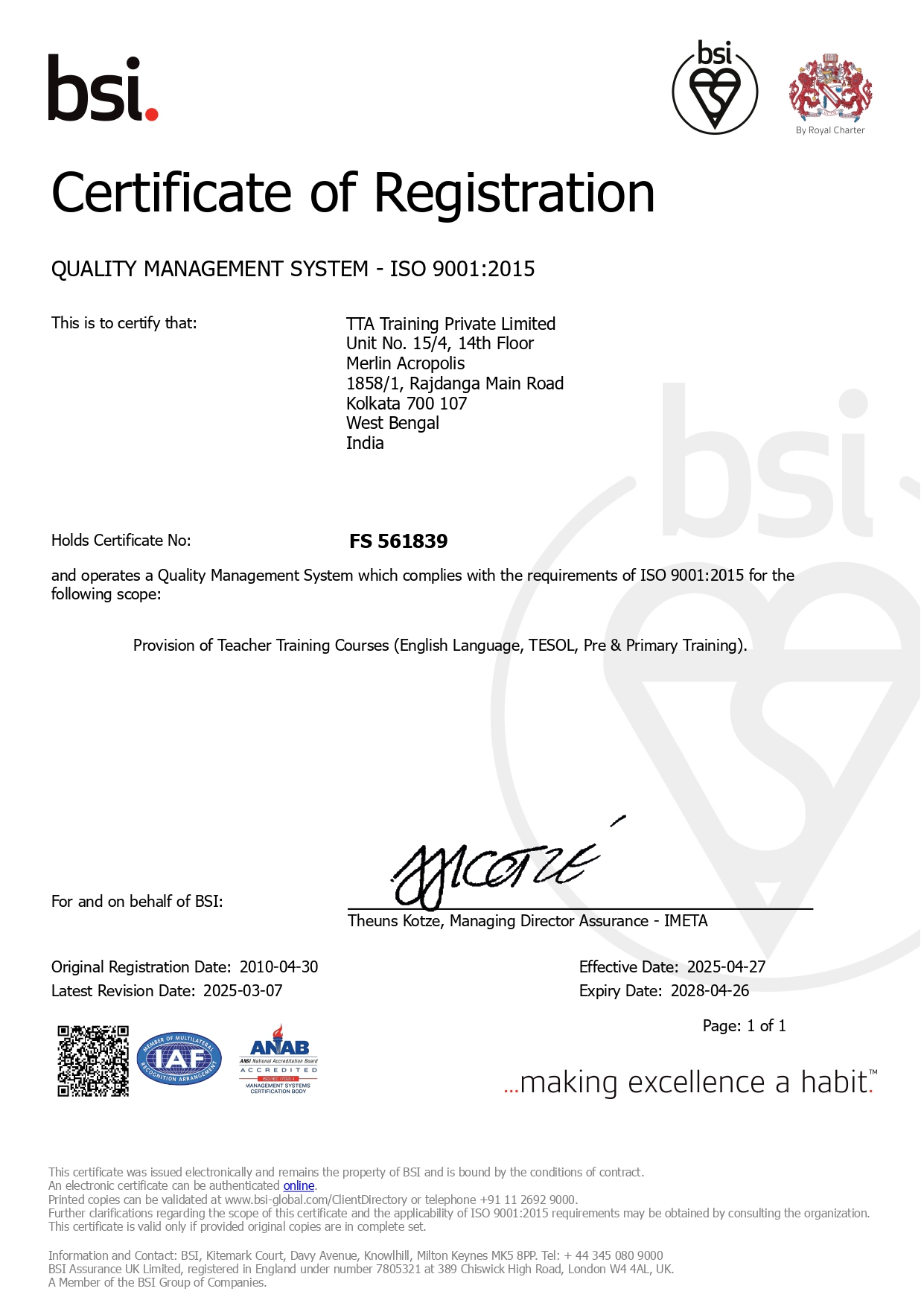 the field of education. The Training Company (ISO 9001:2015) is officially